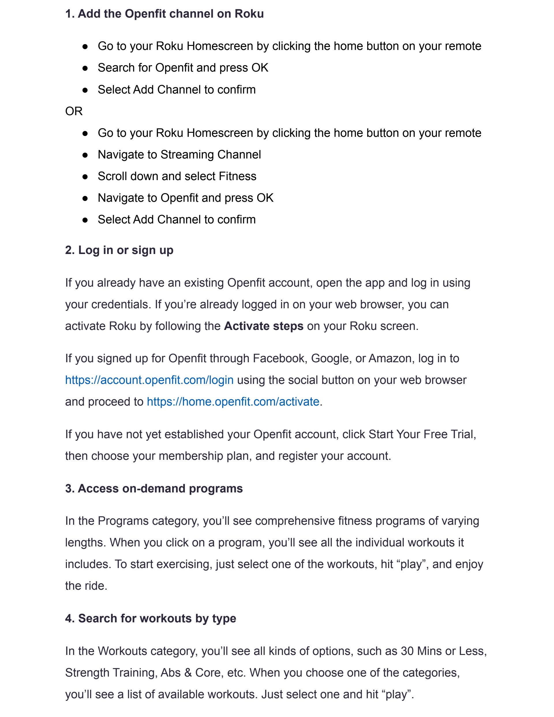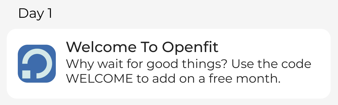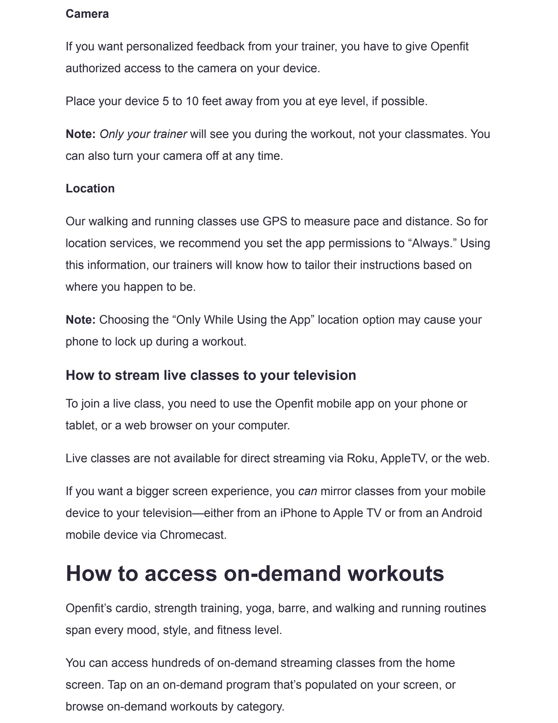 The Openfit tutorial was originally laced with playful language that mirrored the brand. But that caused this communication to run way too long. So we sacrificed some personality for brevity and clarity, reducing the scope down to just the "how to's."